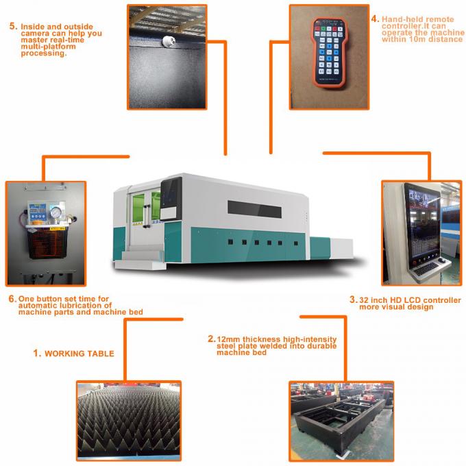 Hele maskinen består af værktøjsmaskiner, bevægelsesdele, kontroldele til elektrisk udstyr og andre hjælpedele. Via styresystem til drift af tre aksers bevægelsesdele, så det kan køre til fiberlaserskærehoved opnå en stabil, nøjagtig og højhastighedsbevægelse; X- og Y-aksen vedtages af importeret med original emballage af høj kvalitet og præcision HIWIN lineær styreskinne, arbejdsbord vedtaget af firkantet rør til svejsning af den samlede maskine, spændingsudglødningsglødebehandling, den maksimale bærende bære af mesa kunne få 500 KG, det kan også har universal kugleleje, maskine ekstern opsætning af perifere klemmeindretninger, brug fuld lukket støvsikker enhed, fotoelektrisk sensor og andre nøjagtige positioneringsdele for at sikre transmissionens nøjagtighed.